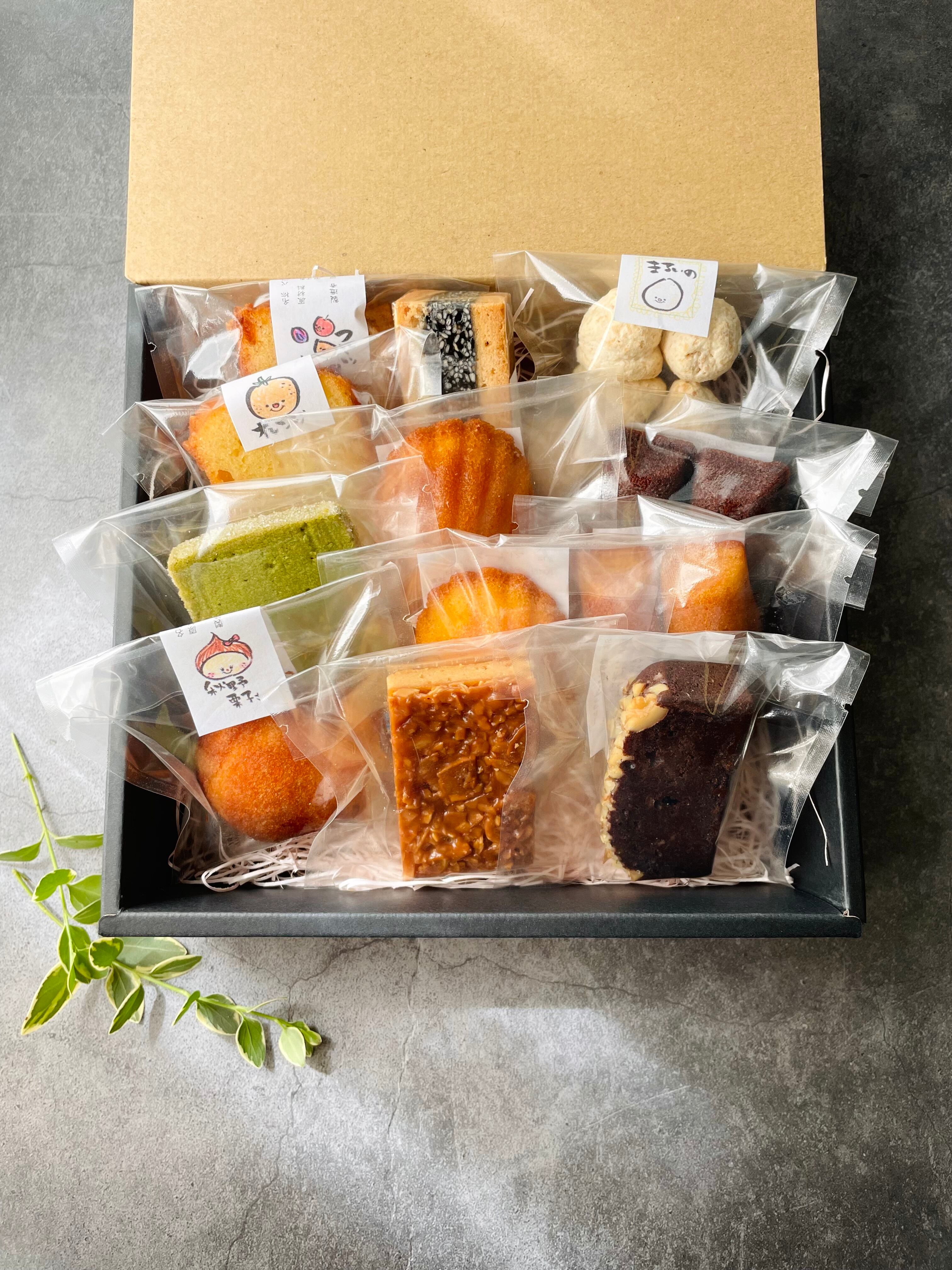 今回は11種類の焼き菓子が計12個入った詰め合わせになります。